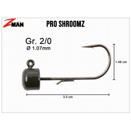 Die Pro ShroomZ von Z-Man schließen die Lücke zwischen den feinen Finesse ShroomZ und den etwas größeren Power Finesse ShroomZ. Sie sind ausgestattet mit einem extra starken Haken der Größe 2/0 und eignen sich damit prima auch fürs Angeln auf große Fische in hindernisreichem Terrain. Die Pro ShroomZ verfügen über einen feinen Lure Keeper am Schenkel, der nicht nur die ElaZtech-Gummiköder von Z-Man sicher hält. Der pilzförmige Kopf garantiert einen aufrechten Stand am Gewässergrund und macht diesen Jig optimal zum Angeln mit dem Ned Rig.