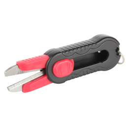 Das einziehbare Design verfügt über eine gezackte Schneide, die harte geflochtene Schnüre greift und mühelos schneidet. Die Schere kommt mit Halsband.